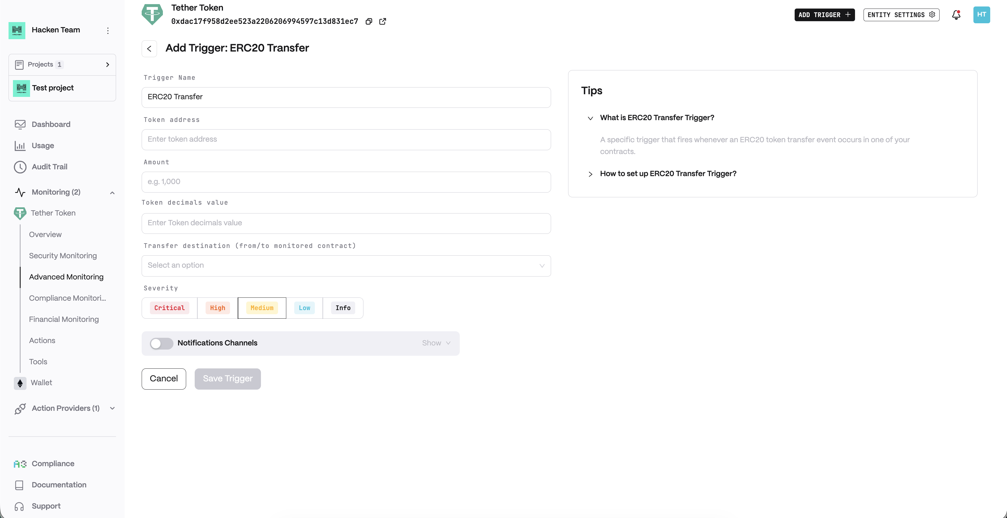 3. *Amount* - Token amount as a limit, transfer that exceeds the limit will be noticed.
