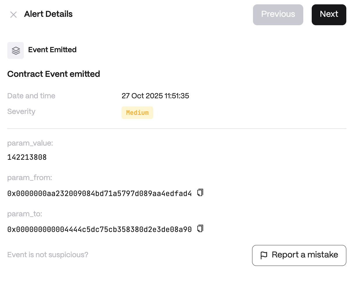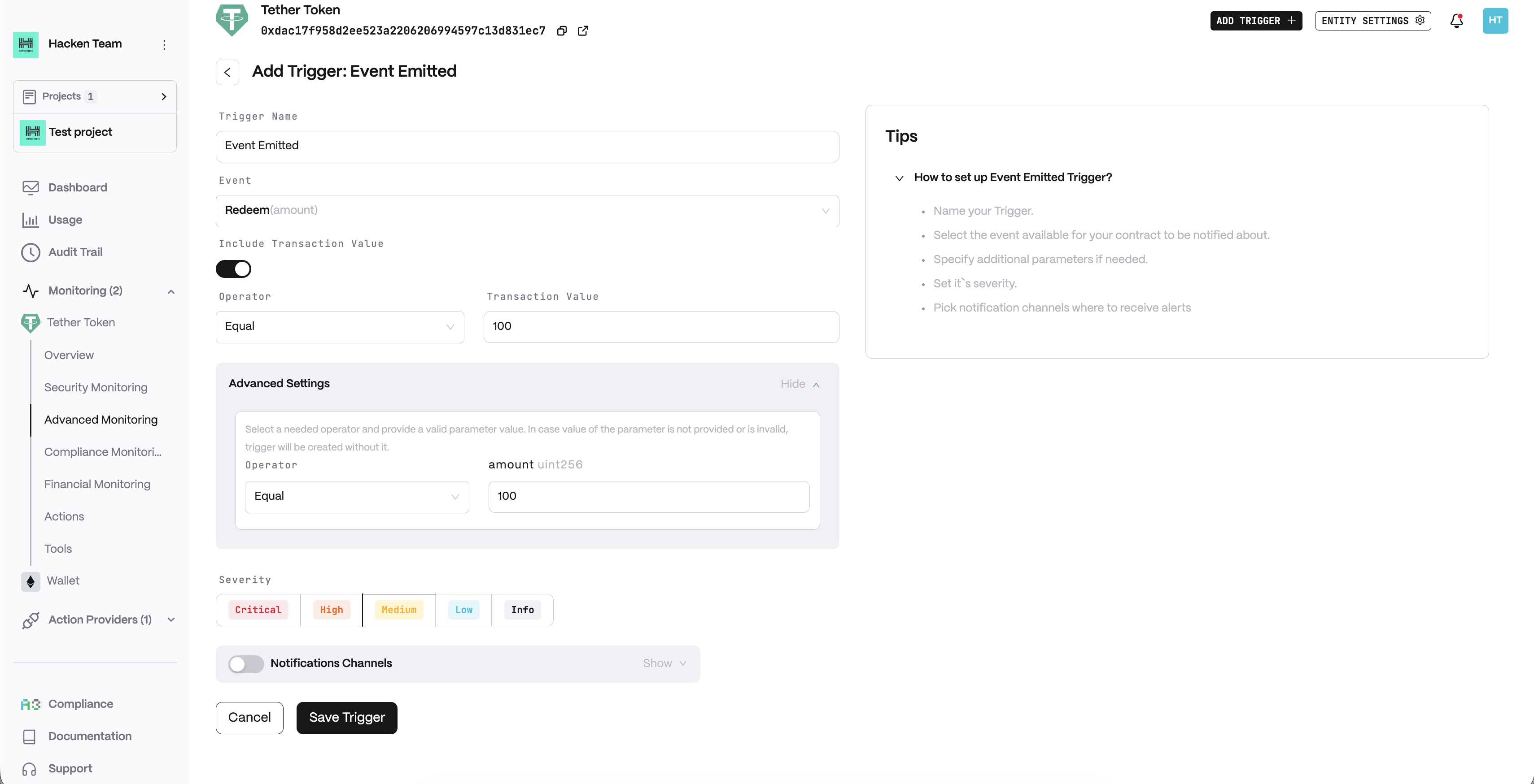 This trigger alerts you whenever an event is emitted from your smart contract, giving you real-time visibility into what's happening.
